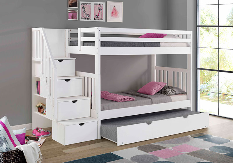 Bunk Shown with Trundle bed, Sold Separately. Also available, Under Bed Storage Drawers, Sold Separately.