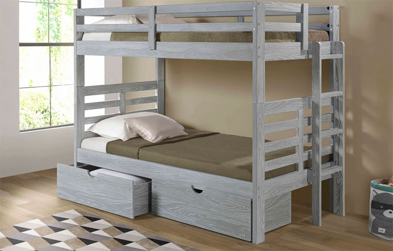 All our solid wood bunks feature crescent nuts and bolts. Our bunks have thick side rails. All bunks come with slat kits and are mattress ready. User friendly with generous distance between the upper and lower beds.