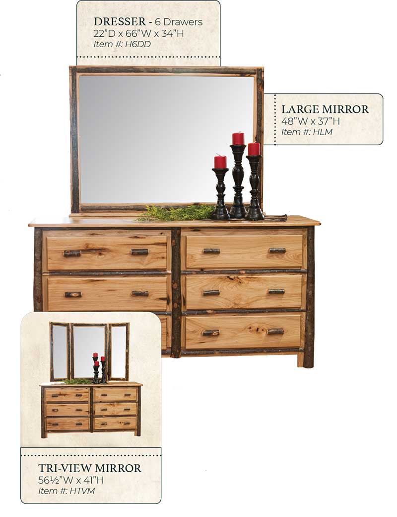 Hickory 6 Drawer Dresser- by Miller's Rustic Furniture