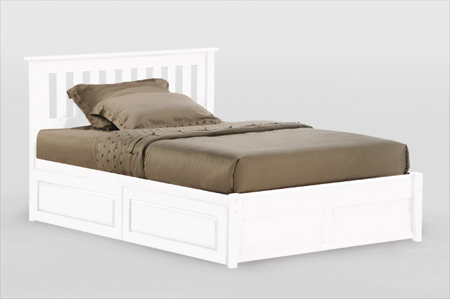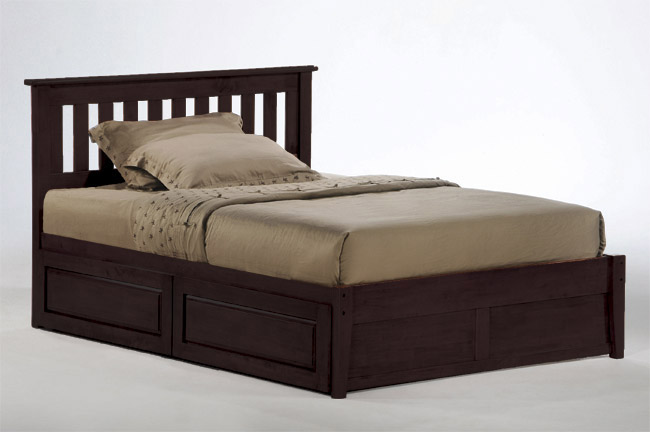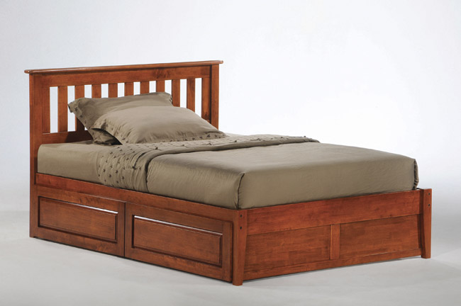 Bed Shown with Night & Day “K” Series Under Bed Drawers (Set of 2), sold separately. Also available Night & Day “P” Series Under Bed and Futon Drawers (Set of 2), sold separately. Also available Night & Day Trundle Bed, sold separately with K-series only.